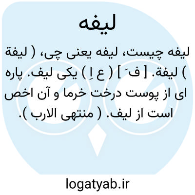 ( لیفة ) لیفة. [ ف َ ] ( ع اِ ) یکی لیف. پاره ای از پوست درخت خرما و آن اخص است از لیف. ( منتهی الارب ). || انطاکی گوید: گیاهی است سرخ و خاردار و به شکل خیار کوچکی و نائب مناب قثاءالحمار در افعال و در نواحی مصر کثیرالوجود و زیاده از یک درهم قتال است.