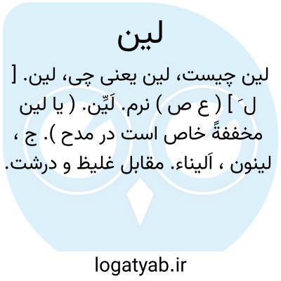لین. [ ل َ ] ( ع ص ) نرم. لَیِّن. ( یا لین مخففةً خاص است در مدح ). ج، لینون، اَلیناء. مقابل غلیظ و درشت. لَدن.