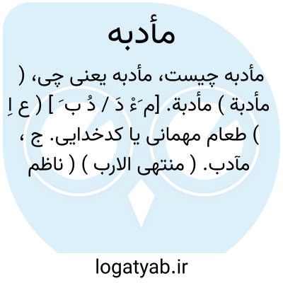 ( مأدبه ) (مَ دَ بِ یا بَ ) [ ع. مأدبة ] (اِ. ) طعامی که در ضیافت و مجلس عروسی دهند، ولیمه، ج. مآدب.