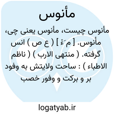 ( اسم ) انس گرفته: خوگر: ولایتش بوفود بر و برکت و وفور خصب نعمت ماهول و مانوس... جمع: مانوسین.