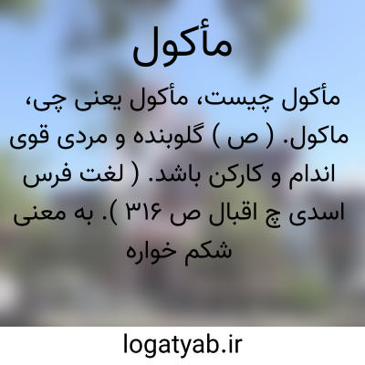 ۱- ( اسم ) خورده شده: جمله عالم آکل و ماکول دان باقیان را مقبل و مقبول دان. ( مثنوی. نیک.۲ ) ۴: ۳- ( صفت ) قابل خوردن خوردنی مقابل غیرماکول. ۳- طعام خوراک خواربار جمع: ماکیل: و خواربار یعنی ماکول این شهر از شهرها وولایتها برند.