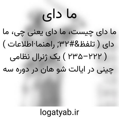 ما دای ( تلفظ راهنما·اطلاعات ) ( ۲۲۲–۲۳۵ ) یک ژنرال نظامی چینی در ایالت شو هان در دوره سه امپراتوری چین بود. او قبلاً در زمان اواخر سلسله هان شرقی زیر نظر عمویش ما تنگ، یک فرمانده جنگی، در شمال غربی چین خدمت می کرد. پس از مرگ ما تنگ، او پسر عمویش ما چائو ( پسر بزرگ ما تنگ ) را دنبال کرد و برای مدت کوتاهی در هانژونگ به جنگ سالار ژانگ لو پیوستند. ما چائو بعداً به جنگ سالار دیگر لیو بی پناه برد و ما دای او را همراهی کرد. ما دای زیر نظر لیو بی و بعداً در ایالت شو هان ( که توسط لیو بی تأسیس شد ) خدمت کرد.