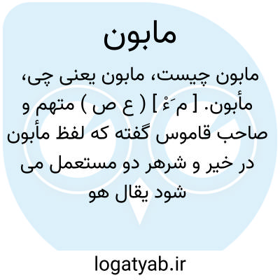 ( اسم ) ۱- متهم تهمت زده. توضیح در قاموس آمده که لفظ مابون در خیر و شر هر دو مستعمل میشود یقال: هومابون بخیر او مابون بشر لیکن اگر آنرا مطلق استعمال کنند مراد از آن متهم بشر باشد. ۲- آنکه دیگران با او مباشرت کنند امرد مفعول جمع: مابونین.