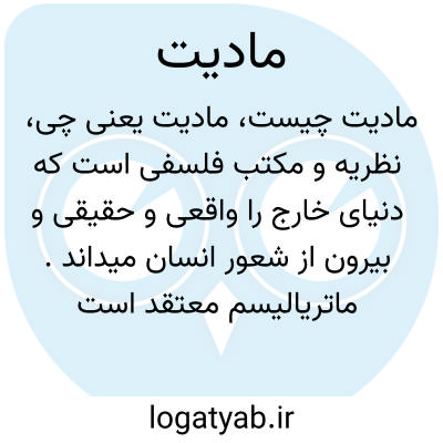 نظریه و مکتب فلسفی است که دنیای خارج را واقعی و حقیقی و بیرون از شعور انسان میداند. ماتریالیسم معتقد است که ماده مبدا و اساس بوده حس و شعور و تفکر فرع و زائیده ماده است و درک خاصیت ماده تکامل یافته و عالی و انعکاس خارجی جهان مادی و قوانین آن در مغز میباشد.