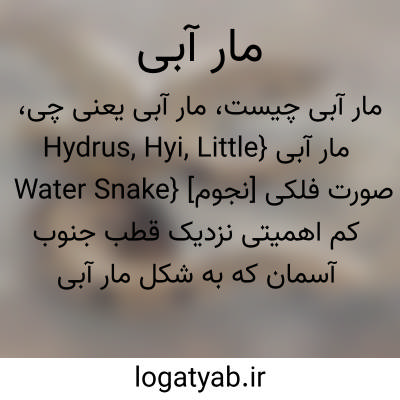 {Hydrus, Hyi, Little Water Snake} [نجوم] صورت فلکی کم اهمیتی نزدیک قطب جنوب آسمان که به شکل مار آبی تصور می شود