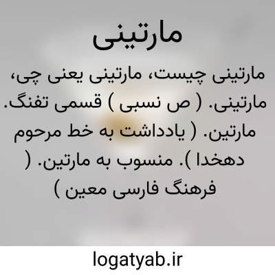مارتینی. ( ص نسبی ) قسمی تفنگ. مارتین. ( یادداشت به خط مرحوم دهخدا ). منسوب به مارتین. ( فرهنگ فارسی معین ): ورود تفنگ... مارتینی به زمان ناصرالدین شاه. ( المآثر و الاثار، از فرهنگ فارسی ایضاً ).