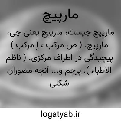 ۱- پیچ در پیچ مانند حلقه های مار: خط مارپیچ. ۲- ( اسم ) مفتولی فلزی که دوراستوانه ای پیچیده شود. ۳- ( ستون مار ) عبارت از ستون یک بیک است با ۵ قدم مسافت بین افراد. ستون مارپیچ برای حرکت از معابر مستور اتخاذ میشود.
