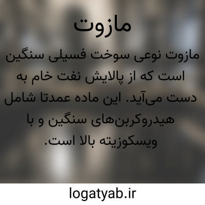 مازوت. ( روسی، اِ ) یکی از هیدروکربورهای نفتی که در تصفیه خام پس از اترو بنزین و نفت چراغ بدست می آید و چون سیاه رنگ است به نام نفت سیاه نیز موسوم است. این ماده ارزان ترین ماده سوختنی برای کوره حمامها و تنور نانواییها و موتورهای دیزل می باشد. نفت سیاه. ( فرهنگ فارسی معین ).