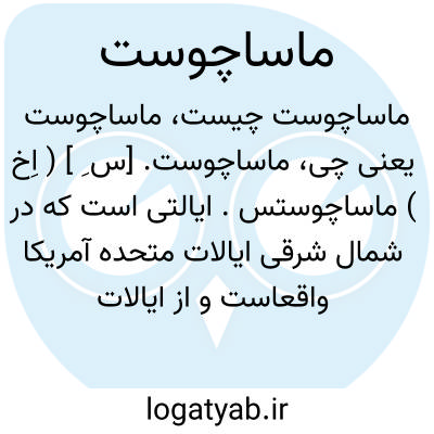 ماساچوست. [س ِ ] ( اِخ ) ماساچوستس. ایالتی است که در شمال شرقی ایالات متحده آمریکا واقعاست و از ایالات اصلی ممالک متحده امریکا بشمار می رود. از طرف شمال به ورمنت و نیوهمشایر و از مشرق به اقیانوس اطلس و از جنوب به اقیانوس اطلس و «رودآیلند» و ایالت کونکتیکوت و از مغرب به نیویورک محدوداست. ماساچوست ایالت چهل و چهارم و دارای 8257 میل مربع مساحت است و 4690514 تن سکنه دارد و از حیث جمعیت نهمین ایالت کشورهای متحده آمریکاست. این ایالت به 14 ناحیه تقسیم می شود و مرکز آن بوستون است. ( از اعلام جغرافیائی وبستر ).