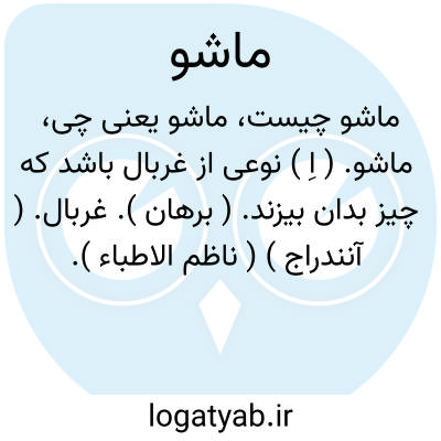 ماشو. ( اِ ) نوعی از غربال باشد که چیز بدان بیزند. ( برهان ). غربال. ( آنندراج ) ( ناظم الاطباء ). ماشوب. ماشوه. ماشیوه. نوعی غربال که بدان چیزها بیزند. الک. ( فرهنگ فارسی معین ). منخل. ( یادداشت به خط مرحوم دهخدا ):
