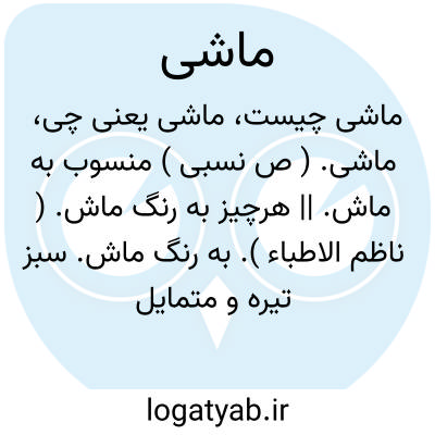 ماشی. ( ص نسبی ) منسوب به ماش. || هرچیز به رنگ ماش. ( ناظم الاطباء ). به رنگ ماش. سبز تیره و متمایل به خاکی. ( فرهنگ لغات عامیانه جمال زاده ). به رنگ دانه ماش. ( یادداشت به خط مرحوم دهخدا ).