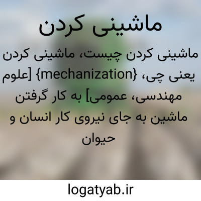 {mechanization} [علوم مهندسی، عمومی] به کار گرفتن ماشین به جای نیروی کار انسان و حیوان