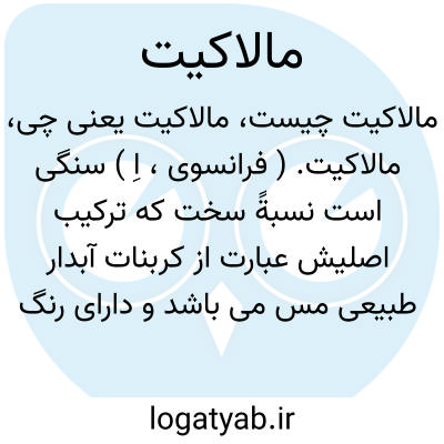 (یا: مرمر سبز؛ دَهْنه) کانۀ متداول مس. کربنات بازی مسبا فرمولCu۲CO۳ (OH)۲ است. مالاکیت منبع رنگدانۀسبز است و در حوضچه های پرورش ماهی، برای جلوگیری از رشد قارچ، به کار می رود. به علاوه، آن را صیقل می دهند و در جواهرسازی، ساخت زینت آلات، و تهیۀ اشیای هنری به کار می برند.