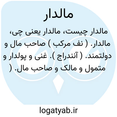 مالدار. ( نف مرکب ) صاحب مال و دولتمند. ( آنندراج ). غنی و پولدار و متمول و مالک و صاحب مال. ( ناظم الاطباء ). مال دارنده. دارای مال. ثروتمند. غنی. توانگر. دارا. صاحب ثروت. ( یادداشت به خط مرحوم دهخدا ):