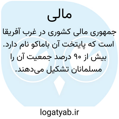 کشوری در غرب آفریقا است که پایتخت آن باماکو نام دارد. این کشور با مساحتی حدود ۱٬۲۴۰٬۱۹۲ کیلومتر مربع، از شمال با الجزایر، از غرب با موریتانی و سنگال، از جنوب با گینه و ساحل عاج و از شرق با بورکینافاسو و نیجر همسایه است. نظام حکومتی مالی جمهوری چندحزبی است و جمعیت آن بر اساس سرشماری سال ۲۰۰۹ میلادی، حدود ۱۳٬۴۴۳٬۰۰۰ نفر اعلام شده است. جغرافیای مالی متشکل از سرزمینهای خشک و کمارتفاع است بهطوری که یکسوم شمال آن در صحرای بزرگ آفریقا قرار گرفته و سایر مناطق آن نیز عمدتاً نیمهصحرایی محسوب میشوند.