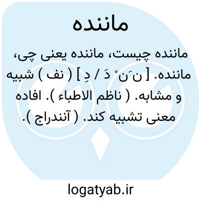 ۱- ( اسم ) شباهت دارنده شبیه. توضیح ۱- این کلمه اگرپس از اسم ( مشبه به ) آید بدون اضافه استعمال شود: سرو ماننده. ۲- مانند شبیه نظیر (بدین معنی لازم الاضافه است ): در سینه دلش ز نازکی بتوان دید مانند. سنگ خاره از آب زلال. ( حافظ.۳۸۱ ) یا ماننده بودن. شباهت داشتن: هر یکی مراصل خود را بنده اند احتیاطی کن بهم ماننده اند. ( مثنوی. نیک. ۱۹۸: ۳ ) توضیح ۲ در صورتیکه مراد از ماننده ذوی العقول باشد در جمع مانندگان آید.