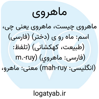 اسم: ماه رو ی (دختر) (فارسی) (طبیعت، کهکشانی) (تلفظ: m.-ruy) (فارسی: ماهروي) (انگلیسی: mah-ruy)