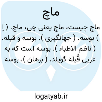 ماچ. ( اِ ) بوسه. ( جهانگیری ). بوسه و قبله. ( ناظم الاطباء ). بوسه است که به عربی قُبله گویند. ( برهان ). بوسه و مصدر آن ماچیدن است. ( از آنندراج ). بوس. بوسه. قبله. ( یادداشت به خط مرحوم دهخدا ).