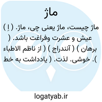 ماژ. ( اِ ) عیش و عشرت وفراغت باشد. ( برهان ) ( آنندراج ) ( از ناظم الاطباء ). خوشی. لذت. ( یادداشت به خط مرحوم دهخدا ):