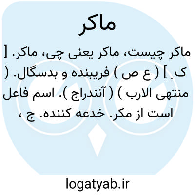 ( اسم ) مکر کننده فریبنده جمع: ماکرین: زین سبب بد کاهل محنت شاکرند اهل نعمت طاغیند و ماکرند. ( مثنوی. نیک. ۱۷۱: ۳ )