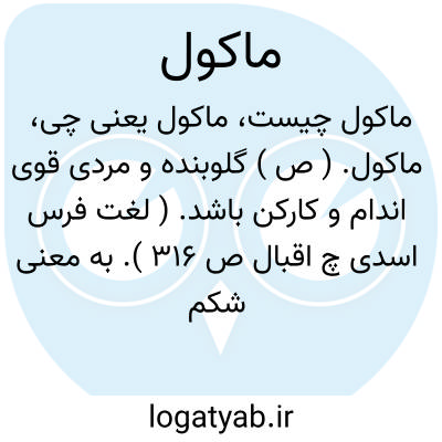 ماکول. ( ص ) گلوبنده و مردی قوی اندام و کارکن باشد. ( لغت فرس اسدی چ اقبال ص 316 ). به معنی شکم خواره و پرخور هم آمده است. ( برهان ) ( از ناظم الاطباء ):