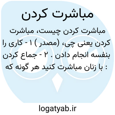 (مصدر ) ۱ - کاری را بنفسه انجام دادن. ۲ - جماع کردن: با زنان مباشرت کنید هر گونه که خواهید. ۳ - نظارت کردن.