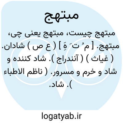 مبتهج. [ م ُ ت َ هَِ ] ( ع ص ) شادان. ( غیاث ) ( آنندراج ). شاد کننده و شاد و خرم و مسرور. ( ناظم الاطباء ). شاد. شادان. خوشحال. شادمان. ( یادداشت به خط مرحوم دهخدا ): ملوک آفاق به مخالّت دولت او مفتخر، و سلاطین جهان به مراسلت حضرت او مبتهج. ( المعجم چ 1 دانشگاه ص 19 ).