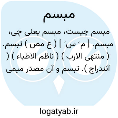 ( اسم ) دندان پیشین: مولد من بکوهی است از کوههای آذربایگان بغایت خوش و خرم از مبسم اوایل جوانی خندان تر و از موسم نعیم زندگانی تازه تر جمع: مباسم.