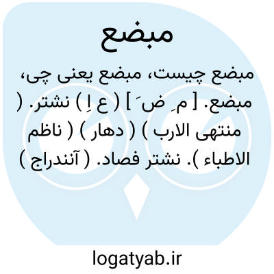 مبضع. [ م ِ ض َ ] ( ع اِ ) نشتر. ( منتهی الارب ) ( دهار ) ( ناظم الاطباء ). نشتر فصاد. ( آنندراج ) ( غیاث ). نشتر که بدان رگ زنند. ( از محیطالمحیط ) ( از اقرب الموارد ). نیش را به تازی مبضع گویند. ( ذخیره خوارزمشاهی ). نیش. رگ زن. تیغ. مفصد. و آن آلتی است که بدان رگ گشایند. نیشتر. نشتر. تیغ فصاد. تیغ رگ زن. مشرط. مشت. تیغ. ( یادداشت به خط مرحوم دهخدا ): و اگر غشاء غلیظ بود میانگاه آن به مبضعی بشکافند و اگر گوشت فزونی بود به مبضع آن را ببرند. ( ذخیره خوارزمشاهی ).