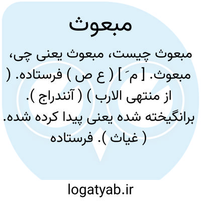 مبعوث. [ م َ ] ( ع ص ) فرستاده. ( از منتهی الارب ) ( آنندراج ). برانگیخته شده یعنی پیدا کرده شده. ( غیاث ). فرستاده شده و برانگیخته شده واز جانب کسی روانه شده. ( ناظم الاطباء ). فرستاده. برانگیخته. بعیث. ج، مبعوثون و مبعوثین. ( یادداشت دهخدا ): و قالوا ان هی الا حیوتنا الدنیا و مانحن بمبعوثین. ( قرآن 29/6 ). وقالوا ائذا کنا عظاماً ورفاتاً ائنا لمبعوثون خلقاً جدیدا. ( قرآن 49/17 ).