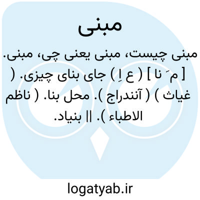 مبنی. [ م ُ ] ( ع ص ) آن که حکم بر بنا میکند و یا سبب بنا کردن میگردد. || فربه کننده. || مأخوذ ازتازی، بنا گذارده. ( ناظم الاطباء ).