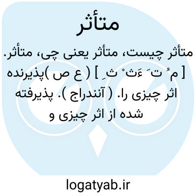 (اسم ) ۱ - آنکه اثر پذیرد اثر پذیر. ۲ - اندوهگین متالم جمع: متاثرین.