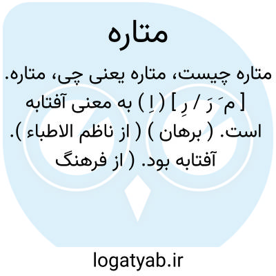 متاره. [ م َ رَ / رِ ] ( اِ ) به معنی آفتابه است. ( برهان ) ( از ناظم الاطباء ). آفتابه بود. ( از فرهنگ جهانگیری ). مطهره. ( زمخشری از یادداشت به خط مرحوم دهخدا ) ( ناظم الاطباء ). || انا و ظرفی را نیز گویند که از چرم دوزند وبه عربی مطهره خوانند. ( برهان ). ظرفی که بدان وضو کنند که از چرم دوزند و در اسفار بهمراه خود برند. رشیدی گفته ظاهراً در اصل مطهره است و عربی است. ( از انجمن آرا ) ( آنندراج ). آوندی چرمین که در آن آب ریزند و مسافران با خود بردارند. ( ناظم الاطباء ): پس او را و جامه شتر او را بجستند چیزی نیافتند متاره ای دیدند که سرشار از آب، از شتر آویخته آب متاره بریختند و جنبشی دادند. ( ترجمه اعثم کوفی ص 151 ).