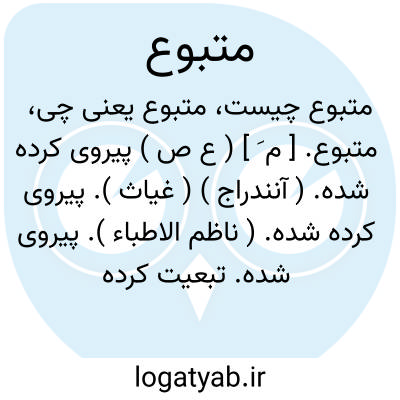 ( اسم ) پیروی شده تبعیت کرده شده اطاعت شده مقابل تابع: و خوانین و امرائ لشکریان و سایر خلایق از تابع و متبوع بنوحه و زاری در آمده. یا دولت ریاست وزارت ادار. متبوع... که از آن تبعیت و اطاعت کنند.