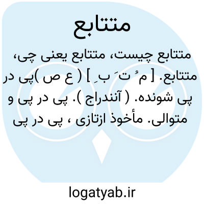 ( اسم ) کسی که از پی دیگری رود پی در پی رونده جمع: متتابعین: و رضوانش گرد نعلین بگیسوی حور افشاند بر تعاقب ایام و لیالی متتابع و متوالی.