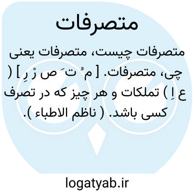 متصرفات. [ م ُ ت َ ص رْ رِ ] ( ع اِ ) تملکات و هر چیز که در تصرف کسی باشد. ( ناظم الاطباء ).