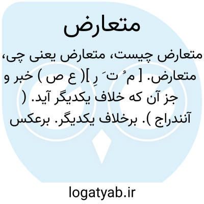 متعارض. [ م ُ ت َ رِ ]( ع ص ) خبر و جز آن که خلاف یکدیگر آید. ( آنندراج ). برخلاف یکدیگر. برعکس و مخالف و متضاد. ( ناظم الاطباء ) ( از منتهی الارب ) ( از اقرب الموارد ). || تقلیدکننده و چیزی را شبیه و مانند چیز دیگر کننده. ( ناظم الاطباء ) ( از فرهنگ جانسون ). و رجوع تعارض شود.