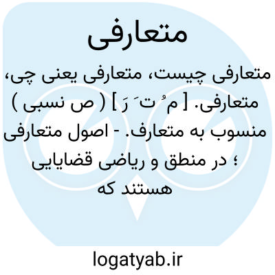 ( ~. ) [ ع - فا. ] (ص نسب. ) منسوب به متعارف، مربوط به متعارف:،اصول ~قضایایی هستند که به نفسه معلومند و اثبات آن ها احتیاج به قضیة دیگر ندارد.