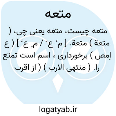(مُ عِ ) [ ع. متعة ] (اِ. ) ۱ - آن چه که از آن برخوردار شود. ۲ - زنی که برای تمتع به مدت معینی صیغه شود.