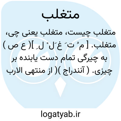 ( اسم ) غلبه کننده گیرند. چیزی بزور:... بجمله از دست متغلبان بیرون کند. جمع: متغلبین.