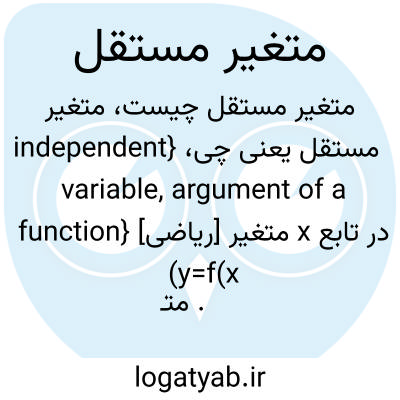 متغیری که مقادیر آن وابسته به متغیر دیگر نباشد. معمولاً از نماد x برای نشان دادن متغیر مستقل، و از نماد y برای نشان دادن متغیر وابستهاستفاده می کنند. زمان همواره متغیری مستقل است. نیز ← تابع