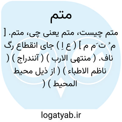 متم. [ م ُ ت َم م ] ( ع اِ ) جای انقطاع رگ ناف. ( منتهی الارب ) ( آنندراج ) ( ناظم الاطباء ) ( از ذیل محیط المحیط ) ( از اقرب الموارد ). || آنچه افزون از پیمانه باشد. || برکت. ( ناظم الاطباء ). || بدر و ماه تمام. ( ناظم الاطباء ) ( از اقرب الموارد ) ( از محیطالمحیط ).