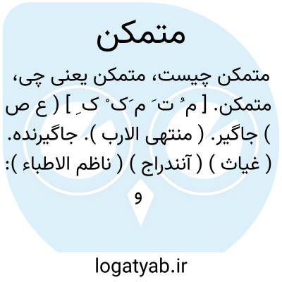 ( اسم ) ۱ - جای گیر جای گزین ثابت:... پادشاه آنجا که دختر پادشاه و بعد از فوت پدر بدستور آن ولایت بر سریر فرمانروایی متمکن بود... ۲ - دارای مکنت و مال. ۳ - توانا قادر جمع: متمکنین.