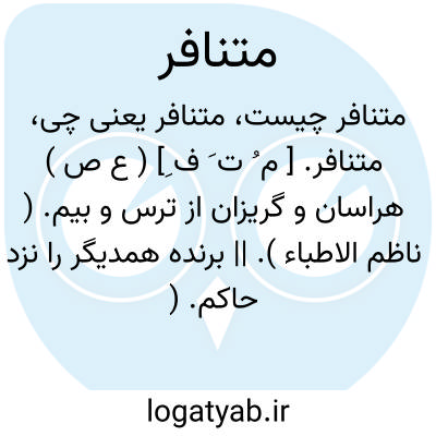 متنافر. [ م ُ ت َ ف ِ] ( ع ص ) هراسان و گریزان از ترس و بیم. ( ناظم الاطباء ). || برنده همدیگر را نزد حاکم. ( ناظم الاطباء ) ( از منتهی الارب ). || الفاظی را گویند که به گفتن مشکل بود و یکدیگر را امتحان کنند به گفتن الفاظ متنافر یا دو بار یا سه بار بر وِلا بتوانند گفتن [ یا نه ] چنانکه این الفاظ است: خواجه تو چه تجارت کنی. کم کس این را سه بار بیک دم تواند گفت که زبانش درنیاویزد و ضد این را که آسان بود گفتن و خوش و روان بود متلایم خوانند. ( حدائق السحر فی دقائق الشعر چ مرحوم اقبال ص 87 ). و رجوع به تنافر شود.