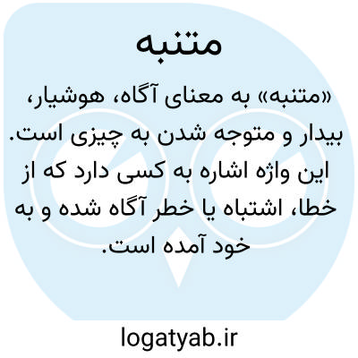 کلمه‌ی «متنبه» در فارسی و عربی به معنای آگاه، هوشیار، بیدار و متوجه شدن به چیزی است. این واژه از ریشه «نَبَّهَ» گرفته شده و اشاره به کسی دارد که از خطا، اشتباه یا خطر آگاه شده و به خود آمده است. در متون ادبی و اخلاقی، «متنبه» به فردی گفته می‌شود که بعد از تجربه یا مشاهده یک حادثه، عبرت گرفته و ذهن و قلبش نسبت به حقیقت یا حقیقت‌های اخلاقی و دینی هشیار شده است. معنای آن هم می‌تواند هوشیار، بیدار، متوجه و عبرت‌آموز باشد. در قرآن و احادیث، انسان متنبه کسی است که با تدبر و تفکر در زندگی و آموزه‌های دینی، راه درست را تشخیص داده و از خطاهای گذشته پرهیز می‌کند. همچنین، «متنبه» می‌تواند به کسی اشاره داشته باشد که به حقیقت مسائل و حقایق جهان هستی پی برده و از آن درس گرفته است. کاربرد این واژه در ادبیات فارسی و عربی برای تأکید بر آگاهی، بیداری فکری و اخلاقی رایج است.