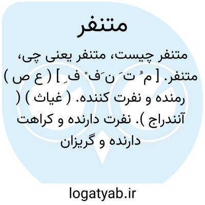 متنفر. [ م ُ ت َ ن َف ْ ف ِ ] ( ع ص ) رمنده و نفرت کننده. ( غیاث ) ( آنندراج ). نفرت دارنده و کراهت دارنده و گریزان و بیزار. ( ناظم الاطباء ). رجوع به تنفر شود.