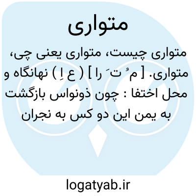 (اسم ) ۱ - پنهان شونده پوشیده شونده: ( فردوسی ) سیاست محمود دانست شب از غزنین برفت و به هری بدکان اسمعیل وراق پدر ازرقی فرود آمد و شش ماه در خان. او متواری بود... ۲ - در بدر سرگردان: متواری راه دلنوازی زنجیری کوی عشقبازی. ( نظامی. گنجین. گنجوی ) توضیح متواری و متواریک و متواری شدن در فارسی بضم اول و سکون دوم استعمال شده و آنرا نوعی از تفریس دانسته اند.