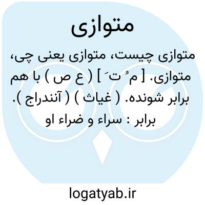 (مُ تَ ) [ ع. ] (اِفا. ) ۱ - برابر یکدیگر. ۲ - دو خط برابر با هم که هرچه امتداد داده شوند به هم نرسند، موازی.، ~الاضلاع چهار ضلعی ای که اضلاع آن دو به دو با هم موازیند.، ~السطوح فضایی که دارای شش وجه است و هر دو وجه رو به رو متساوی و موازیند.