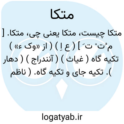 متکا. [ م ُت ْ ت َ ] ( ع اِ ) ( از «وک ء» ) تکیه گاه ( غیاث ) ( آنندراج ) ( دهار ). تکیه جای و تکیه گاه. ( ناظم الاطباء ). تکیه جای. ( منتهی الارب ) ( از اقرب الموارد ). ج مُتَّکات. ( اقرب الموارد ). تکیه گاه. پشتی. آنچه بدو تکیه کنند. ( یادداشت به خط مرحوم دهخدا ):