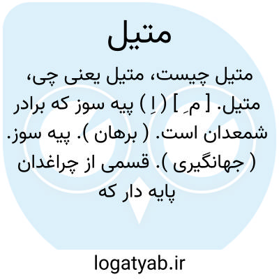 متیل. [ م ِ ] ( اِ ) پیه سوز که برادر شمعدان است. ( برهان ). پیه سوز. ( جهانگیری ). قسمی از چراغدان پایه دار که پیه سوز گویند. ( ناظم الاطباء ). رشیدی کلمه را به فتح اول آورده به معنی سپندسوز و... شاهدی ندارد. ( از حاشیه برهان قاطع چ معین ).